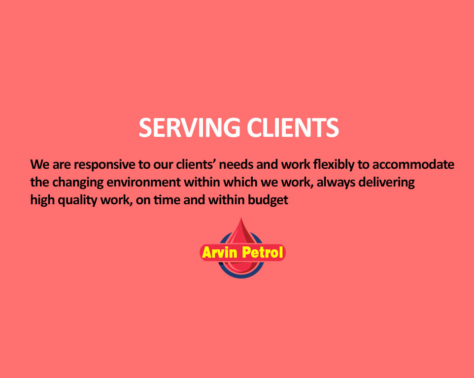ARVIN PETROL works with a wide range of clients including many well-known international and national oil companies, utilities and infrastructure owners. We differentiate ourselves on the technical and operational quality of service which we deliver to our clients and partners. Also, we have no ownership ties to operators, contractors or suppliers, and therefore provide a truly independent, best practice service.
